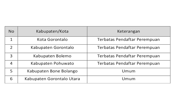 Sehubungan dengan hal disebut diatas, untuk memenuhi kuota 8 (delapan) kali Kebutuhan Pendaftar dan Keterwakilan Perempuan minimal 30% (tiga puluh persen) dari Jumlah Pendaftar di setiap Kabupaten/Kota Se-Provinsi Gorontalo, Tim Seleksi Calon Anggota Bawaslu Kabupaten/Kota Se-Provinsi Gorontalo menetapkan Perpanjangan Masa Pendaftaran Calon Anggota Bawaslu Kabupaten/Kota Se- Provinsi Gorontalo yang akan dilaksanakan pada tanggal 13 s.d. 21 Juni 2023 dengan rincian kebutuhan Pendaftar sebagai berikut Berdasarkan Surat Keputusan Ketua Bawaslu Nomor 201/HK.01.00/K1/06/2023 tentang Perubahan Keputusan Ketua Bawaslu Nomor 173/KP.01/K1/05/2023 tentang Pedoman Pelaksanaan Pembentukan Anggota Bawaslu/Panwaslih Kabupaten/ Kota Masa Jabatan 2023-2028, Tim Seleksi melakukan Perpanjangan masa Pendaftaran dalam hal pendaftar kurang dari 8 (Delapan) kali jumlah anggota Bawaslu Kabupaten/Kota yang dibutuhkan atau dengan kondisi sebagai berikut: