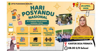 Trilogis, (Puskesmas Berlian) — Dalam rangka memperingati Hari Posyandu Nasional tahun 2026, UPTD Puskesmas Berlian menggelar kegiatan Pos Pelayanan Terpadu yang dipusatkan di Kantor Desa Permata pada Rabu, 29 April 2026. Kegiatan yang dimulai pukul 08.00 WITA ini bertujuan untuk meningkatkan kesadaran masyarakat akan pentingnya pemantauan kesehatan secara berkala, mulai dari balita hingga lansia.
