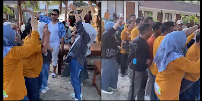 Ironinya, saat para pekerja kebersihan menunggu gaji dengan mata basah, sebagian pejabat BKAD justru terlihat bersantai dalam suasana penuh hiburan, seperti sedang menikmati angin pantai selepas evaluasi triwulan. Kontras sekali: rakyat tercekik, mereka bersenda gurau.