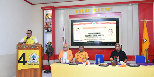 Trilogis (Pemda Boalemo) – Ketua DPD Partai Golkar Kabupaten Boalemo, Lahmuddin Hambali, memberikan arahan strategis dalam pembukaan Musyawarah Kecamatan (Muscam) V Partai Golkar Kecamatan Tilamuta yang berlangsung di Aula Kantor Desa Lahumbo, Sabtu (18/04).