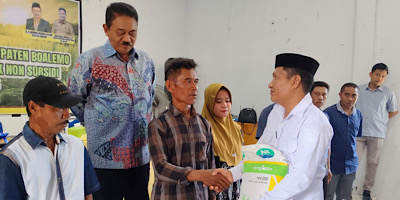 Bupati Boalemo, Drs. Rum Pagau, secara simbolis menyerahkan bantuan bibit jagung dan pupuk non-subsidi kepada kelompok tani dari tiga kecamatan, yakni Paguyaman, Wonosari, dan Dulupi, pada Rabu (14/5/2025) di BPU Paguyaman.