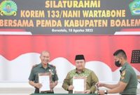 Trilogis.id (Pemda Boalemo) – Kamis 18-08-2022, mewakili Pemerintah Kabupaten Boalemo, Pj. Bupati Boalemo Dr Hendriwan melakukan penandatangan nota kesepakatan bersama korem 133 Nani Wartabone…
