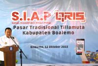 Trilogis.id (Pemda Boalemo) – Bersama Bank Indonesia (BI) Perwakilan Gorontalo, Penjabat Bupati Boalemo Dr.Hendriwan,M.Si melaunching aplikasi SIAP Qris bagi pedagang Pasar Tilamuta, kamis 12-10-2022….